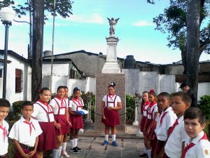 La mañana amaneció calurosa como todas las de mayo, el obelisco ubicado en la intersección de la vía férrea con la Avenida Finlay, luce un lindo arreglo de jardinería que