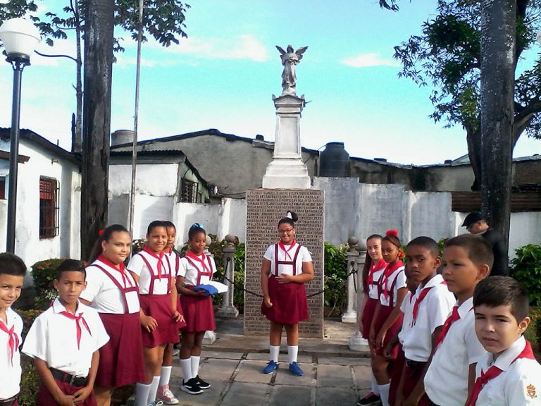 Para honrar la memoria de estos mártires, que dieron su sangre por la libertad de su tierra, asistieron estudiantes de las escuelas primarias: Jesús Suárez Gayol y Tula Aguilera, junto a sus profesoras.