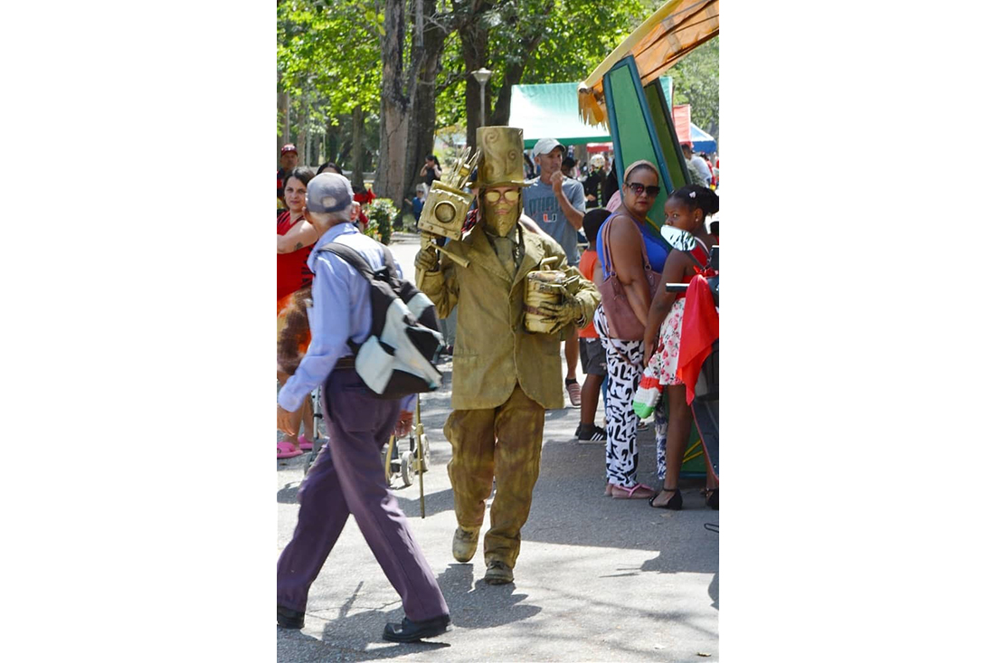 Tuve que esperar a que finalizara su performance y una sesión de fotos con niños y jóvenes, para poder dialogar con la joven que encarna actualmente a este personaje del teatro callejero: la actriz y locutora Evelin Echazabal Antúnez.