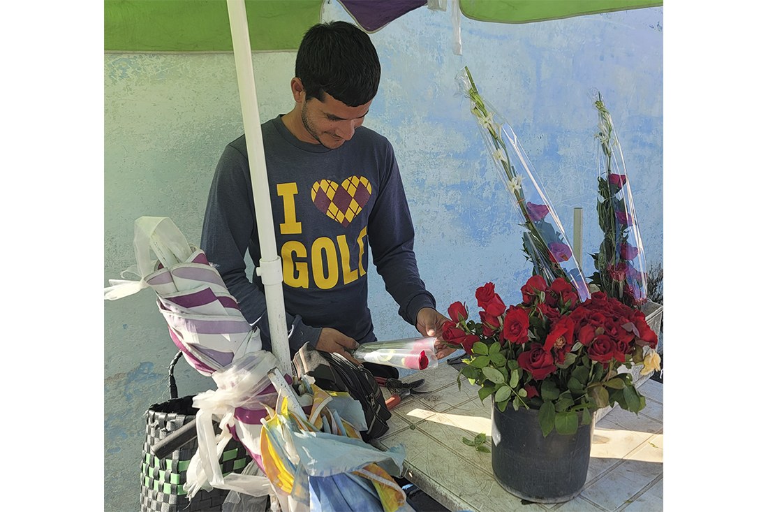 El muchacho, no solo vende más barato, además es amable, complaciente y busca poner sello propio a sus adornos florales, aunque sean de solo una espiga; que se note su envoltura realizada con esmero.