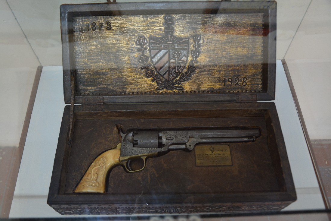 Todos estaban alrededor de la vidriera donde se guarda el revólver que perteneció a Ignacio, el arma con hermosa empuñadura de nácar, tenía gran precisión para su época. La Colt 36, modelo 1851, le fue obsequiada por el coronel Rafael de Quezada y Loynaz en 1869, y acompañó a El Mayor durante los años de lucha, hasta su caída en combate en 1973.